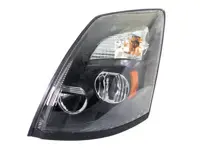 LED headlamp 564.96015SBL for Volvo VNX, VNL, OEM type. Low beam 2330 raw lumens, high beam 1570 raw lumens, amber 3457NAK turn signal bulb. Left hand applications.