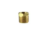 Yellow Brass Male Pipe to Female Pipe Hex Bushing. 3/8 inch female threads, 1/2 inch male threads.