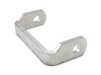 Fleet Engineers one-piece weld-on hinge butt 023-00645. Notched, 0.51 hole diameter, 4.25 inch inside width, 1.12 inch offset. Zinc plated steel.