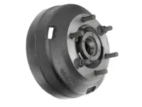 Hub and drum assembly 150.T1601.A1 for Watson and Chalin 8K steerable lift axle. Includes 182.SKF25820 outer race, 182.SKFJM207010 inner race, six 201.6261 wheel studs and 2 201.3017 nuts.