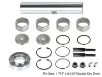 King pin kit 460.523B double draw key for Freightliner Cascadia 10-14K model 3, left side. 1.771 inch outer diameter x 9.212 inch length king pin. Includes 1-460.T523 composite type thrust bearing.