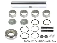 King pin kit 460.539B double draw key for Freightliner Cascadia 10-14K model 3, right hand. 1.771 inch outer diameter x 9.212 inch length king pin. Includes 1-460.T523 composite type thrust bearing.