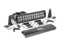 Rough Country Black Series 12 inch dual row LED light bar 70912BL with spot/flood beam features a durable, die-cast aluminum housing and included mounting brackets. The dual row light bar features 24 3-watt High Intensity CREE LEDs outputting 5670 lumens and 72 watts of lighting power. The light bar has a 5 degree spot / 90 degree flood combo pattern.