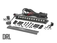 Rough Country Black Series 12 inch single row Cree LED light bar 70712BLDRL with spot beam and DRL offers quick and easy off-road lighting for your truck or Jeep. The kit includes a 12-inch LED light bar, mounting brackets, wiring harness with switch and light cover. The single-row LED light bar features 12 CREE LED's and 15, cool white daytime running LED outputting 4800 lumens and 60 watts of lighting power.