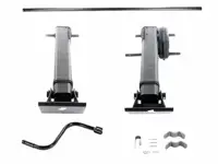 Holland LGS-3A105 Mark V trailer landing gear set. Standard skidfoot, left and right side. Cross drive shaft 68.0 inches. 4.5 x 12.0 x 11.5 inch footware size. 200,000 lbs. static load capacity, 62,500 lbs. lifting capacity, 32,000 lbs. side load capacity. Includes crank holder and brace ears.