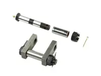 Leaf spring shackle ADV100 for Advance Mixer front 20K axle. Fits rear of front applications for 3.5 inch wide springs. Includes side bars, spring pins, bushings, castellated nuts, cotter pins and grease fittings.