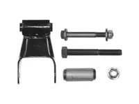 Leaf spring shackle kit for Ford vehicles. Fits rear of rear applications for 2.25 inch springs. 4 inches center-to-center. Replaces Ford part number D3TZ5630F. Kit includes shackle, flanged lock nut, shackle bolt, silent block, U bolt washer and lock nut.