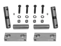 Leaf spring shackle International 3000-4000 series trucks. Fits front applications. Replaces Automann MIS1466 and Flagg IS610. Includes side bars, spring pins, bushings, cap screws, nuts, washers and grease fittings.