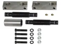 Leaf spring shackle for International S-Series and 9000 Cabover trucks. Fits rear of front applications for 4.0 inch wide springs. Includes side bars, shackle pins, threaded bushing, cap screws, nuts, washers and grease fittings. Side Bar total length 5-5/8 inches, 3-1/4 inch center-to-center pin holes.