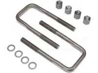 Square forged top U-bolt kit UB87212SFTK with 2 Grade 8 U-Bolts that are 1-1/8 inches in diameter, 5-1/8 inches wide and 12 inches long. Kits includes 2 U-bolts, nuts and washers. Order one U-bolt kit for each leaf spring.