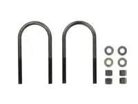 Round U-Bolt Kit with 2 Grade 8 U-Bolts that are 7/8 inches in diameter, 3 inches wide and 11 inches long. Kits include 2 U-bolts, nuts and washers. Order one U-bolt kit for each leaf spring.
