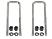 Square U-Bolt Kit with 2grade 5 U-Bolts that are 9/16 inches in diameter, 2-1/2 inches wide and 12-3/4 inches long. Kits includes 2 U-bolts, nuts and washers. Order one U-bolt kit for each leaf spring.