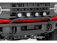 Rough Country light bar mount 51136 is designed for the factory Modular bumper of the Ford Bronco. This versatile mount enhances your vehicle's style and functionality and includes four 3.5 inch round LED lights with amber DRL.