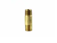 Yellow Brass Long Pipe Nipple. 1/4 inch male threads, 1-1/2 inch length.
