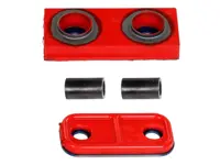 High temp front engine mount kit MM46-62613-HT for Freightliner trucks. 4 inch center-to-center, 3/4 inch bolt hole. Kit includes upper mount, lower mount and two inner sleeves. Replaces OEM number J21246 13.