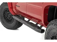 Rough Country oval nerf steps 21017 for the Toyota Tacoma Double Cab features a comfortable, 4.5-inch wide stepping area built into a large, tubular nerf rail that mimics the look of the popular OEM oval step design.