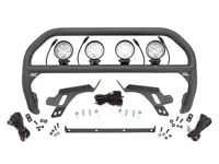 Rough Country LED nudge bar 51158 for the Ford Bronco Sport with factory tow hooks adds a rugged layer of front-end protection while giving your SUV a commanding look on or off the trail. Durable crafted 2-inch tubular steel is finished in a corrosion-resistant black powder coat to maintain its sleek appearance for years of use.