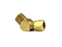 Male Pipe 45 Degree Elbow for nylon air brake tubing. 1/2 inch outer diameter tube, 1/2 inch male pipe thread.
