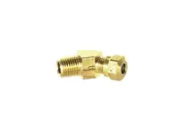 Male Pipe 45 Degree Elbow for nylon air brake tubing. 1/4 inch outer diameter tube, 1/4 inch male pipe thread.