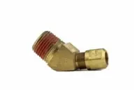 Male Pipe 45 Degree Elbow for nylon air brake tubing. 3/8 inch outer diameter tube, 1/2 inch male pipe thread.