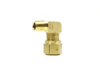 Male Pipe Elbow Adapter for nylon air brake tubing. 1/2 inch outer diameter tube, 1/4 inch male pipe thread.