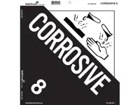 Corrosive Placard Decal, class 8. Black and white print.