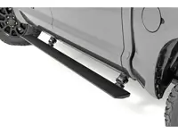 Rough Country power running boards PSR50110 for the Toyota Tundra offers you a sleek, modern way to climb into your cab. The retractable E-Boards tuck tight for a clean look when not in use and automatically extend when the door is opened. The anti-slip surface provides a secure stepping area when getting in and out of your ride. Power Running Boards also include LED lights that provide illumination when deployed and shut off when steps are closed, providing a sleek, aerodynamic look.