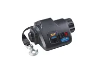 Fulton 500621 XLT powered winch is great for boats up to 26 feet in length and 10,000 lbs. in weight. The rugged design features a wireless remote control, strap with swiveling hook to prevent twisting and convenient built-in LED lights. Strap is 2 inches wide by 15 feet long. Overall dimensions: 14 inches wide, 10 inches front to back, and 6-1/2 inches tall.