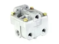 R-5 type relay valve EM36390. Two 3/8 inch PT horizontal delivery ports, two 1/2 inch reservoir ports and one 3/8 inch PT control port. 4.6 psi crack pressure.