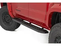 Rough Country RPT2 running boards 44011 for the 2WD/4WD Double Cab Toyota Tacoma pickup are made from durable, rust-resistant steel. They feature a slimmer design that looks great on lifted vehicles and dimple die holes for extra traction.