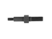 Upper shock bracket stud MPB7586 for Peterbilt applications. 3/4-16 at 1.75 inch threads, 3/8 inch shoulder x 1/2-13 at 0.91 inch threads with 0.748 inch shaft diameter x 1.60 inch. Replaces Peterbilt part numbers 0202176 and, 02-02176.
