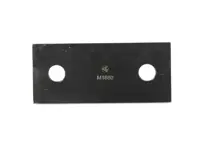 Side bar E817-46 for front spring, rear of front. Use with newer RB 3/4 inch type shackle hangers. OEM is oval shaped. 6.313 inch length x 2.75 inch width x 0.375 inch height. Used with MR712 bushing. Replaces Freightliner part 6803220020, 680-322-00-20, International 3525664C1 and Ford 4C4O5B311AA, 4C4Z5B311AA.
