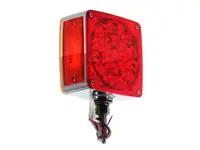 Double face square LED turn signal lamp 4801LEDL with red and amber lenses. Chrome plated. 1 stud housing with polycarbonate lenses. Fits front left side applications.