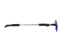 Extendable snow brush 579.SB3862E expands from 38 to 62 inches. Aluminum pole with a brush width of 10.5 inches and a scraper width of 4 inches. Pivoting brush head with soft grips. The extendable pole locks in 6 inch increments.