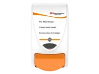 Convenient wall mounted dispenser is designed for use with Stokoderm Protect PURE, Stokoderm Advanced, Stokoderm Grip PURE, Travabon Classic and Stokoderm Aqua PURE 1 liter cartridges.