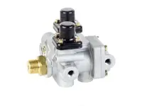 PAI SR-4 type trailer spring brake valve EM56640. One 1/4 inch-18 trailer supply port, one 1/4 inch-18 trailer service port, four 3/8 inch-18 delivery ports, one 3/4 inch-14 reservoir port, two 1/4 inch-18 reservoir ports and one 3/8 inch exhaust port. Replaces OEM number 745-101112.