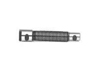 Threaded spring pin B1221-55 fits International front of front spring applications. 1.063 inches small end diameter, 1.500 inch large end diameter, 7.375 inch length, 5.750 inch center-to-center, 1-3/8 inch -6 thread. Replaces International part 688953R1.