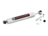 Rough Country Steering Stabilizer 8730930 for the Ford F-250, F-350 and Excursion is designed to restrain bump steering and front end vibration, giving added life to tires, ball joints, and other steering components. The kit features an N3 series stabilizer with chrome hardened 9/16 inch piston rods for incredibly smooth on and off-road steering vibration dampening. Includes mounting hardware. Highly recommended for vehicles running oversized tires.
