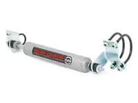 Rough Country Steering Stabilizer 8737530 for the Ford F-350 Pickup is designed to restrain bump steering and front end vibration, giving added life to tires, ball joints, and other steering components. The kit features a Big Bore steering stabilizer with chrome hardened 18 mm piston rod and includes all brackets and hardware. Highly recommended for vehicles running oversized tires.
