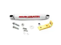 Rough Country Steering Stabilizer 87361 for the Nissan D21 Pickup and Pathfinder is designed to restrain bump steering and front end vibration, giving added life to tires, ball joints, and other steering components. The kit features a Big Bore steering stabilizer with chrome hardened 9/16 inch piston rod and includes all brackets and hardware. Highly recommended for vehicles running oversized tires.