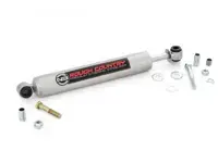 Rough Country Steering Stabilizer 8731130 for the Chevy Silverado and GMC Sierra 2500HD and 3500HD pickup is designed to restrain bump steering and front end vibration, giving added life to tires, ball joints, and other steering components. The kit features an N3 series stabilizer with chrome hardened 9/16 inch piston rods for incredibly smooth on and off-road steering vibration dampening. Includes mounting hardware. Highly recommended for vehicles running oversized tires.