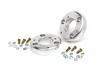 Rough Country Aluminum Leveling Spacer 569 is a great way to level your Ford F-150. The spacer features aircraft quality, T6061 Billet Aluminum which offers enhanced durability against elements like rain and rust and looks great too. The easy to install spacer provides 2 inches of lift and has a driver and passenger side pattern that allows for clearance between the upper control arm and the strut. The kit levels the front of your truck with the rear, giving your F-150 an overall more aggressive appearance and plenty of room for up to 35 inch tires.