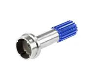 Replacement stub shafts can give new life to an aging driveshaft by replacing the splined section. The long spines have a coating to help it slip when the suspension articulates, and this coating can wear if the driveline is not greased at regular services. Once this coating is gone the driveline may bind, pop, and snap as the suspension moves. Replacement stub shafts will need to be installed by a professional and the shaft will need balancing after installation, but a replacement can save money on a new shaft when the tube and other end are in good shape.