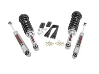 Rough Country 2 inch Leveling Lift Kit 57131 for the 4WD Ford F-150 increases ground clearance and levels the front with the rear of the vehicle. The kit includes front lifted struts, rear 1 inch lift blocks and two rear N3 series shocks.