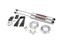 Rough Country 2 inch Leveling Kit 58630 for the Ford F-150 is a great way to level your truck. The kit features front aircraft quality strut extensions and rear lift blocks to give your truck a more aggressive appearance and plenty of room for up to 33-inch tires. Includes Rough Country Premium N3 series rear shocks.
