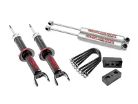 Rough Country 2.5 inch Leveling Lift Kit 395.23 for the 4WD Dodge Ram 1500 increases ground clearance and levels the front with the rear of the vehicle. The kit includes front lifted struts and rear 1.5 inch lift blocks and two Rough Country Premium N2.0 series shocks.