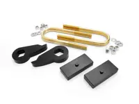 Rough Country 2.5 inch Leveling Strut Extensions 474 for the 4WD Ford F-150 increases ground clearance and levels the front with the rear of the vehicle. The kit includes front strut extensions rear blocks.