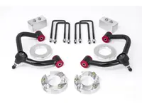 The kit includes top mount coil spring spacers, Tube steel upper control arms, CNC machined billet rear lift blocks, new urethane bushings and steel sleeves, U-bolts and hardware.