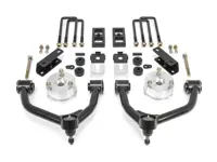 The kit includes new heavy-duty tube steel upper control arms, top hat replacement front strut extensions, differential drop spacers, sway bar spacers and 1 inch tall OE style cast iron rear lift blocks.