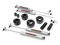 Rough Country 1.5 inch Suspension Lift Kit 65030 for the 4WD Jeep Wrangler and Wrangler Unlimited maintains your factory ride and features easy bolt-on installation. The kit includes front and rear coil spring spacers and front bump-stops. Also includes four Rough Country Premium N3 series shocks.